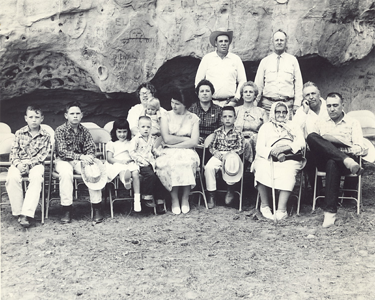 | Tietjen Reunion at Lavantena New Mexico, 1963 Facing camera with hat in lap is Joe's son Fat Tietjen Courtesy of Thelma Jo Elkins |